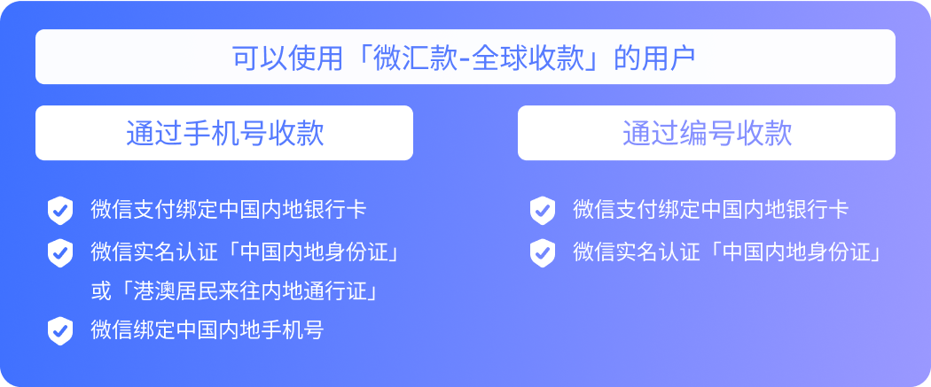 消除了以往海外华人只能通过钱庄或私人换汇等方式汇款回中国时隐藏的潜在合规风险,并且可以直接使用微信收款到绑定的银行卡中,用于微信充值与消费。